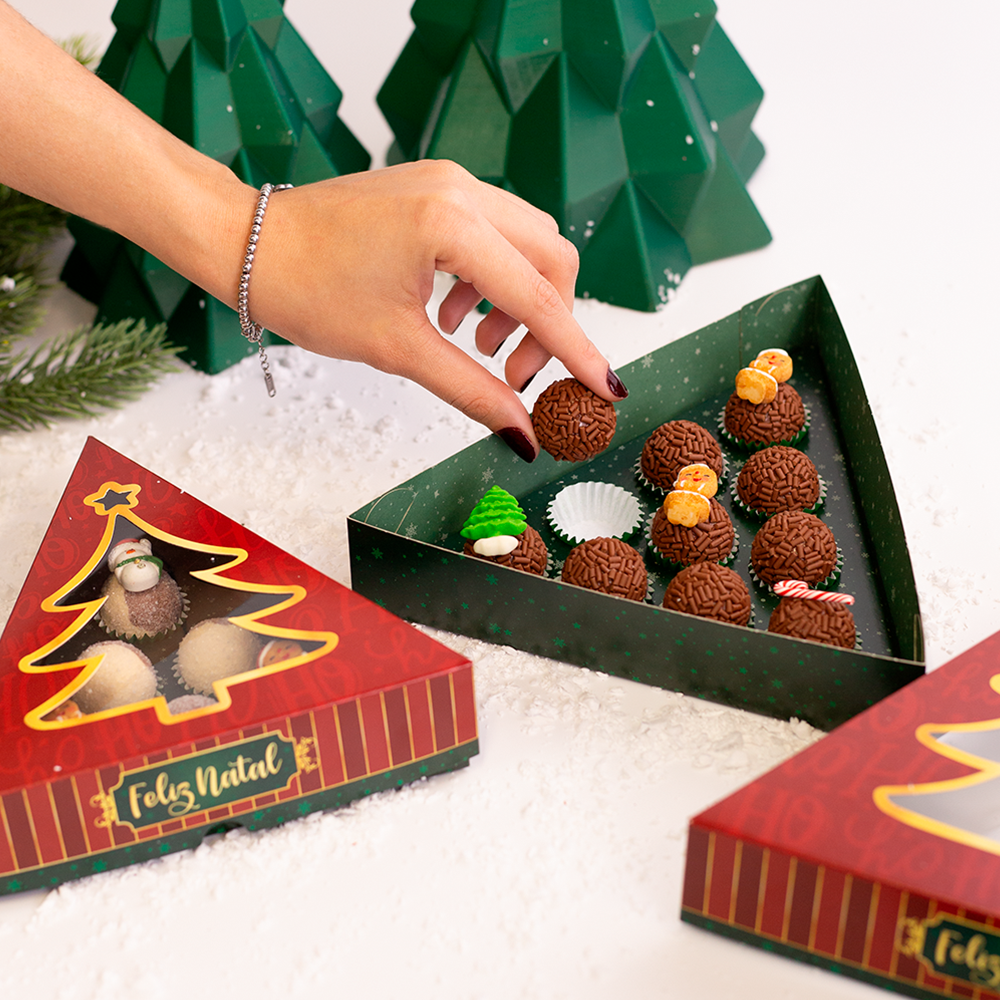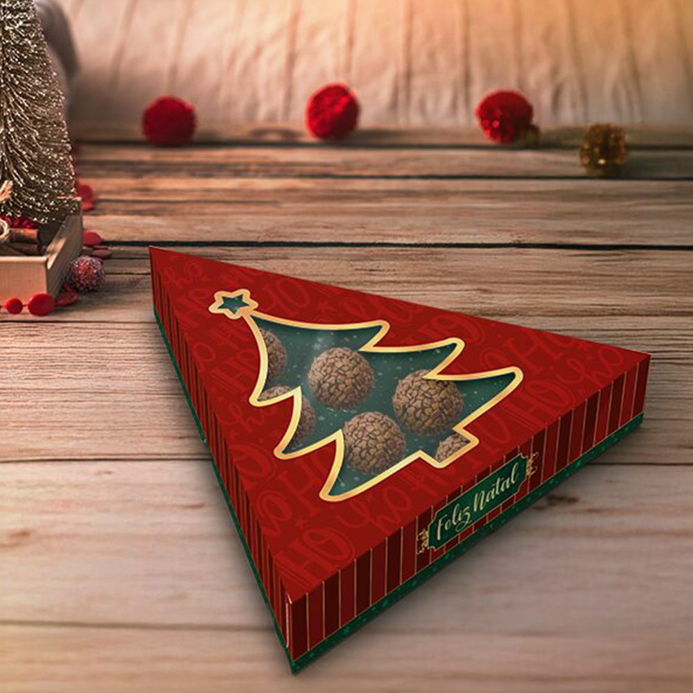 Não sei meu CEPA Caixa Árvore Com Visor Para 10 Doces Noel é uma embalagem temática, criativa e elegante, ideal para acomodar até 10 doces de forma charmosa e organizada. Com formato em árvore de Natal, proporciona um efeito visual encantador, enquanto o visor transparente permite visualizar o conteúdo, valorizando os produtos e a apresentação. Produzida com materiais resistentes, garante segurança no transporte e preserva a integridade dos doces. Decorada com ilustrações natalinas delicadas e festivas, transmite a magia e o espírito do Natal, tornando cada presente ainda mais especial.