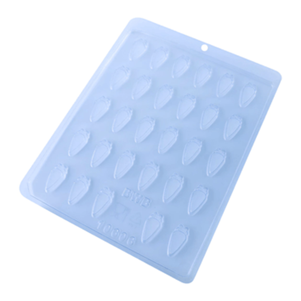 Não sei meu CEPA Forma BWB 10606 Simples Aplique Cenourinhas é perfeita para produzir mini cenouras de chocolate com excelente definição de detalhes. Ideal para a Páscoa, permite criar apliques delicados para decorar ovos, barras, doces e caixas temáticas.